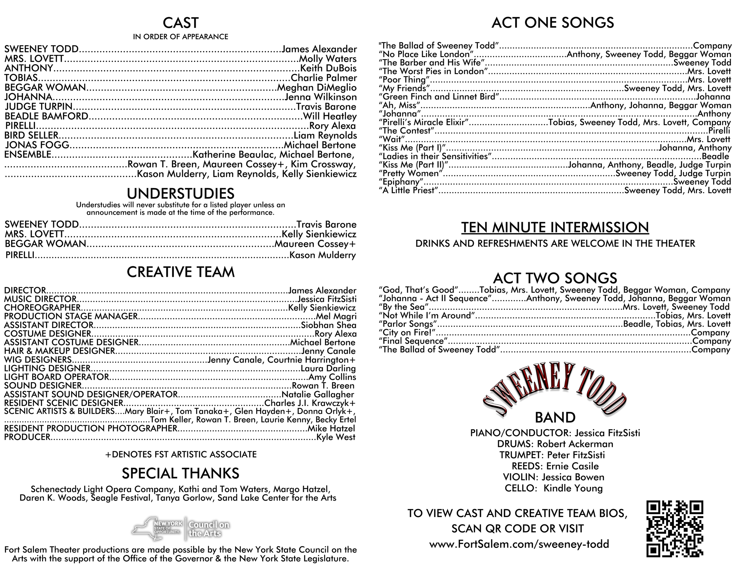 'Sweeney Todd' marks his directorial debut at Salem, though he has previously directed SLOC’s recent productions of 'Once' and 'Matilda'. Thank you for embarking on what I believe to be a daring but poignant take on the classic horror musical. Thank you to Kyle for his trust and support, to Jess for her long-standing assistance, and to Molly for everything, always.